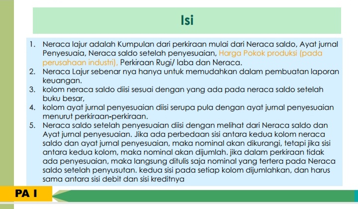 jawab:berfungsi sebagai alat bantu yang bertujuan mempermudah penyusunan laporan keuangan manual, dan bukan bagian dari catatan akuntansi formal. Untuk kamu ketahui, neraca ini berisi berbagai informasi untuk laporan keuangan, seperti saldo perkiraan sebelum jurnal penyesuaian, perkiraan jurnal penyesuaian, hingga saldo perkiraan setelah jurnal penyesuaian.
